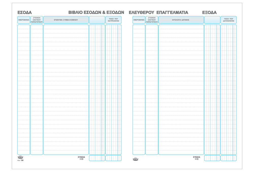 Βιβλίο Εσόδων Εξόδων Ελεύθερου Επαγγελματία αριθμημένο 100φ