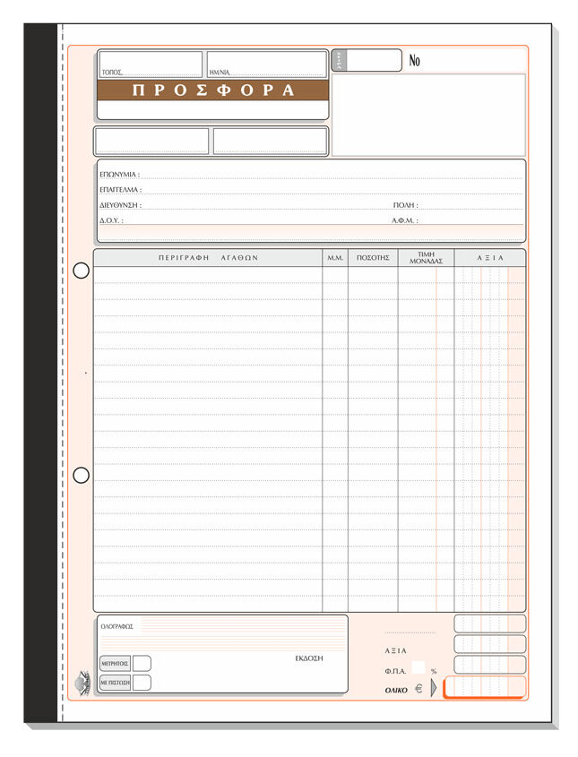 Έντυπο καταγραφής προσφορών με στοιχεία προϊόντων, παράδοσης , πληρωμής κτλ