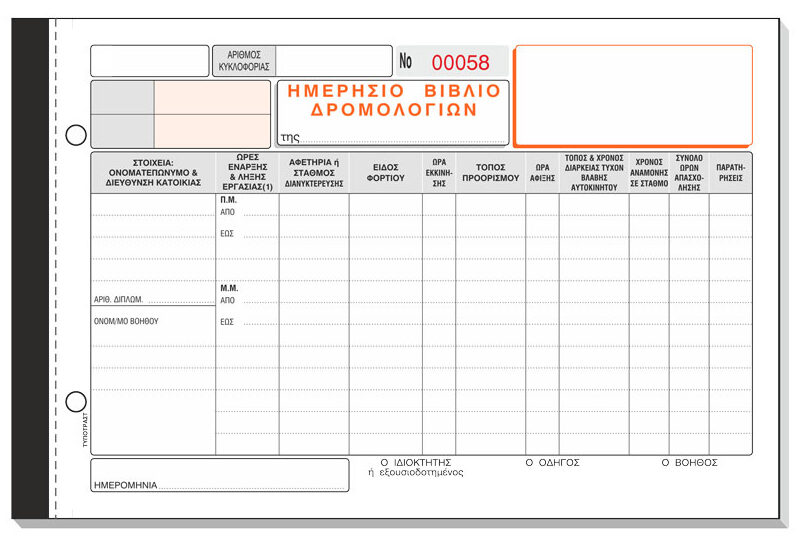 Έντυπο επαγγελματικού αυτοκινήτου , ισχύος τριών μηνών με αρίθμηση από το 1 έως το 92