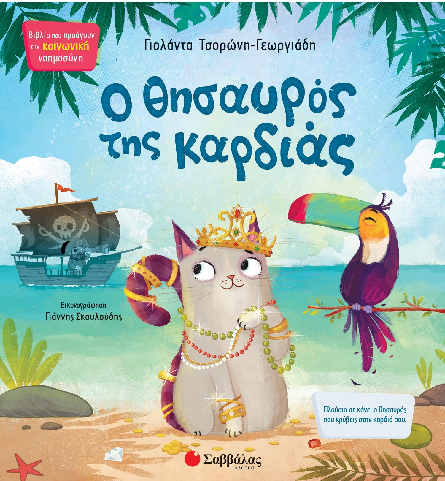 Η γατούλα η Ζιζέλ ζει σε ένα εξωτικό νησί. Ονειρεύεται να γίνει σπουδαία, να ΄χουν να λένε για κείνη οι άνθρωποι. Όταν με τη βοήθεια του τουκάν του φίλου της βρίσκει θησαυρό που κάποτε είχαν κρύψει πειρατές, η Ζιζέλ ενθουσιάζεται! «Θα γράψουν τα βιβλία πως είμαι η πιο πλούσια γάτα του κόσμου!» λέει. Δεν προλαβαίνει όμως να χαρεί και ξαφνικός τυφώνας σαρώνει τα πάντα γύρω. Μανιασμένος αέρας σκορπίζει τα χρυσαφικά, κύματα τεράστια καταπίνουν τα διαμαντικά. Το όνειρο της Ζιζέλ να μείνει στην ιστορία φαίνεται να χάνεται. Όχι όμως… Γιατί κάπου μέσα της βαθιά, θησαυρό μεγάλο έκρυβε στην καρδιά.