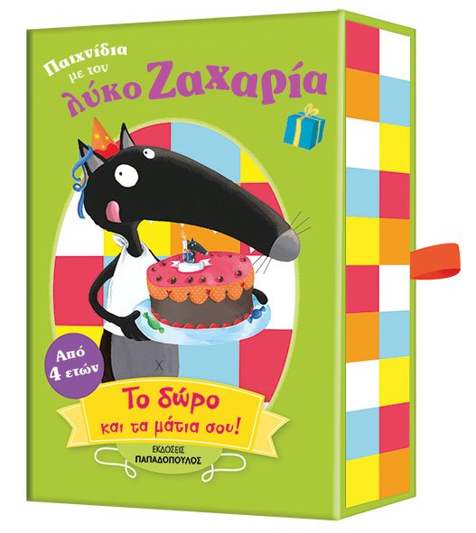 Ο λύκος Ζαχαρίας γιορτάζει τα γενέθλιά του! Παιχνίδια, δώρα, φίλοι… Μέσα στην αναµπουµπούλα όµως όλο και κάτι χάνεται. Για αυτό, το δώρο και τα µάτια σου! Ένα παιχνίδι παρατηρητικότητας, μνήμης και ταχύτητας!