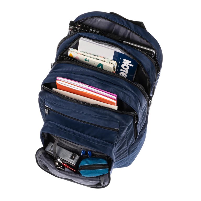 3 κεντρικές θήκες με εσωτερικές τσέπες, η μία θήκη με ειδική ενισχυμένη θέση για προστασία και μεταφορά laptop