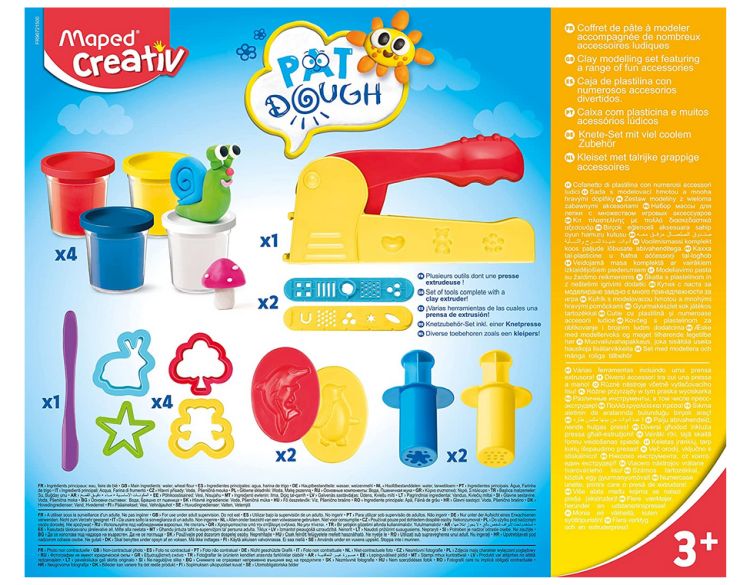 Σετ με πλαστοζυμαράκια Maped σε 4 διαφορετικά χρώματα (4 x 56gr) και 12 αξεσουάρ. Τα πλαστοζυμαράκια έχουν λεία υφή, δεν κολλάνε και αποθηκεύονται σε διάφανα βαζάκια.
