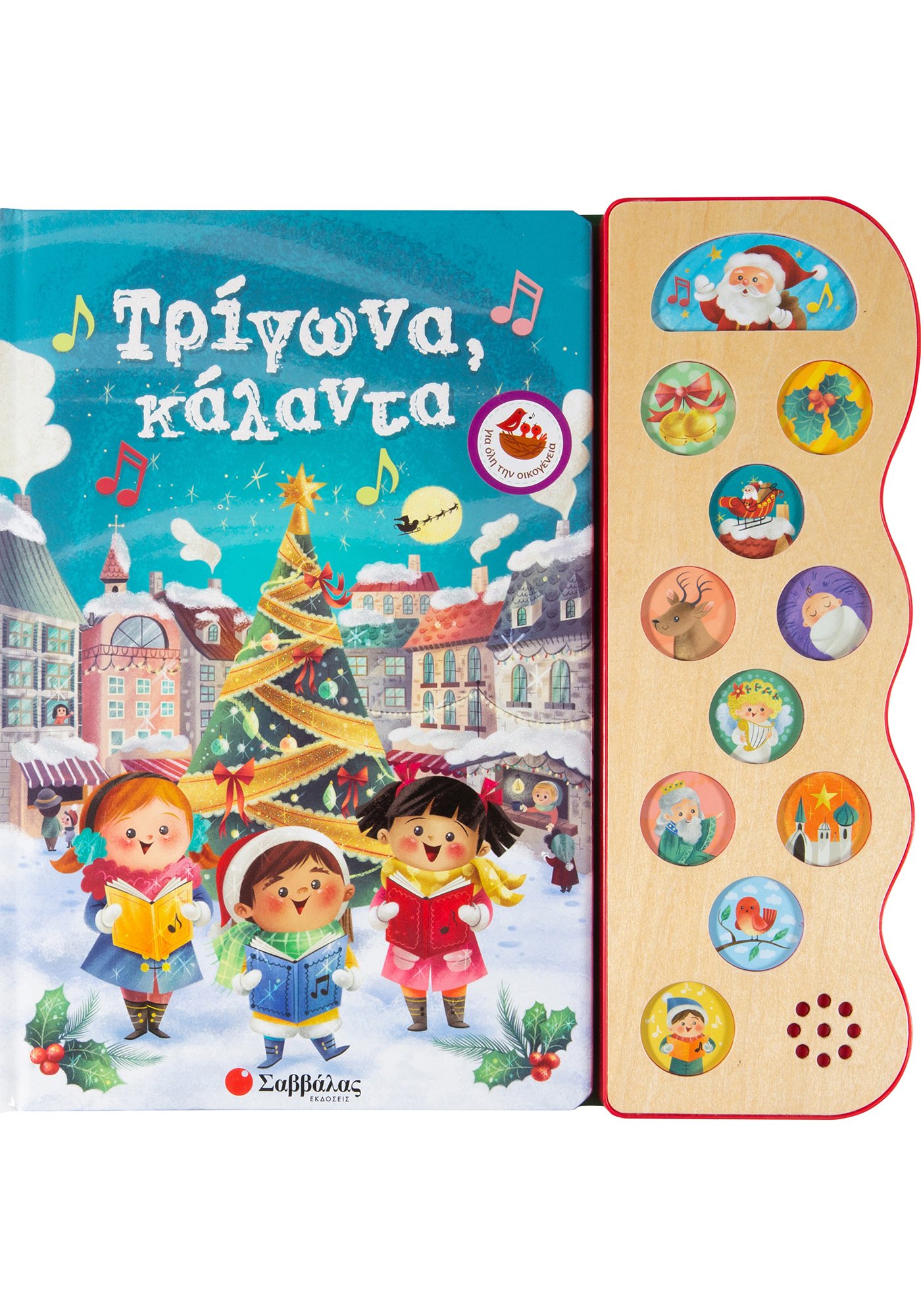 Ένα υπέροχο χριστουγεννιάτικο βιβλίο με πανέμορφη γιορτινή εικονογράφηση! Περιέχει τους στίχους και τη μουσική από 10 αγαπημένα Χριστουγεννιάτικα τραγούδια. Πατήστε το αντίστοιχο κουμπί και τραγουδήστε όλοι μαζί τα γιορτινά τραγούδια!