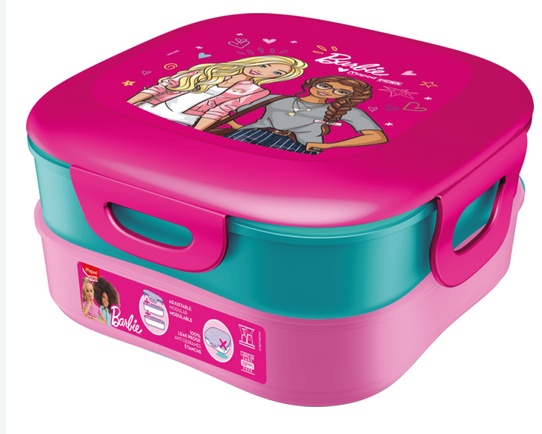 Το φαγητοδοχείο Barbie της Maped αποτελείται από δύο μέρη. Το πάνω μέρος κλείνει αεροστεγώς και δεν υπάρχουν διαρροές. Με αυτό τον τρόπο μπορείτε να μεταφέρετε εύκολα σάλτες ή σούπες. Μπαίνει στο φούρνο μικροκυμάτων χωρίς το καπάκι. Είναι εύκολο στο καθάρισμα καθώς μπαίνει στο πλυντήριο των πιάτων χωρίς το καπάκι. Χωρητικότητα 1,4 λίτρα.