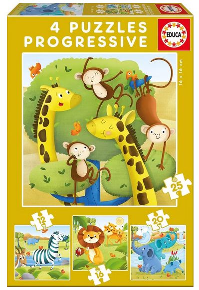 Puzzle Ζώα 4 σε 1 / 12 κομ + 16 κομ+ 20 κομ+ 25 κομ